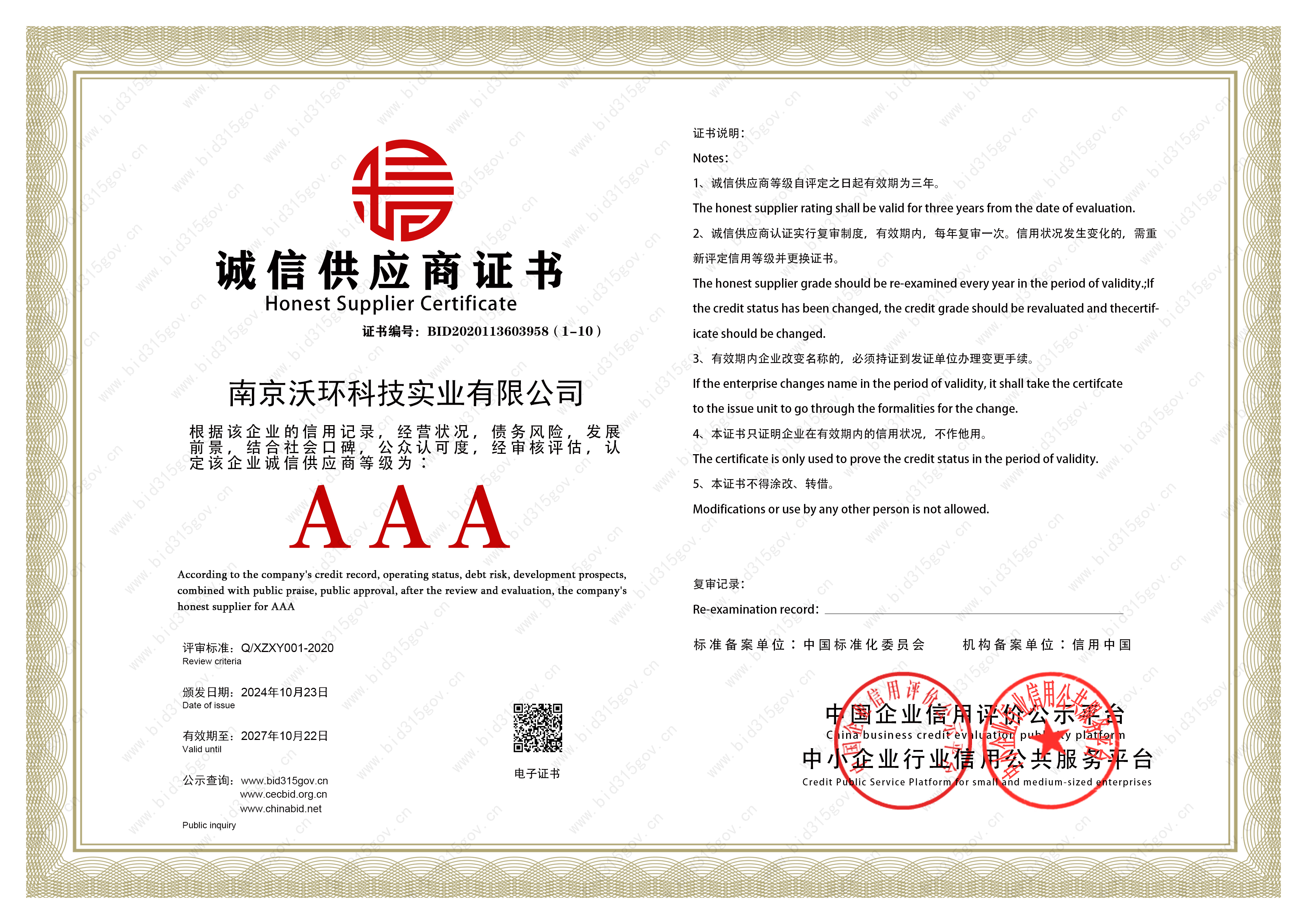 南京沃环科技实业有限公司始终坚持"科技、服务、创新,绿色、环保、健康"的发展理念,以"优质的产品、合理的价格、完善的服务"为广大用户提供完美的产品。使每个客户满意就是我们追求的目标, 愿与新老朋友真诚合作,共同发展,共创美好。